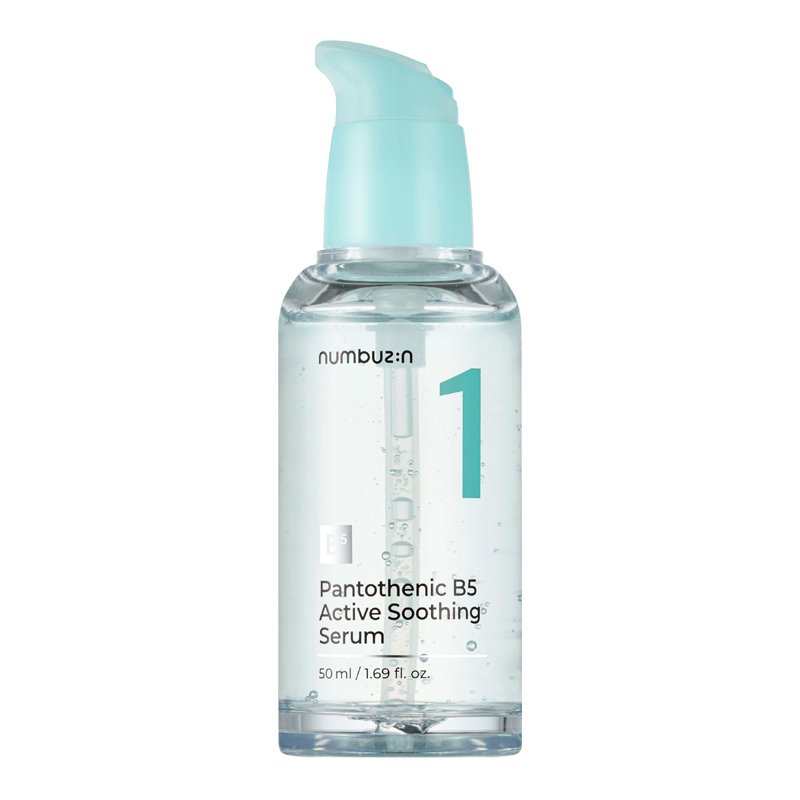 numbuzin No. 1 Pantothenic B5 Active Soothing Serum lengvos tekstūros, intensyviai drėkinantis serumas, sukurtas siekiant nuraminti sudirgusią odą, sumažinti riebalų išsiskyrimą ir pagerinti odos tekstūrą. Sudėtyje yra 12 tipų hialurono rūgšties kompleksas užtikrinantis gilų ir ilgalaikį odos drėkinimą, suteikdamas gaivumo pojūtį. Pantoteno rūgštis (vitaminas B5) ir niacinamidas (4%) padeda nuraminti sudirgusią odą ir sumažinti paraudimus. Serumas ramina, drėkina, padeda reguliuoti riebalų išsiskyrimą, mažina porų dydį ir gerina bendrą problematiškos odos būklę bei tekstūrą. Produktas sukuria drėgnos ir gaivios odos efektą.