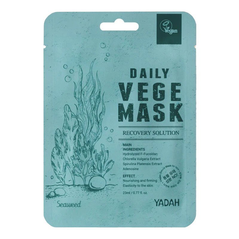 Yadah Daily Vege Mask Seaweed veido kaukė su iš dumblių išgaunamu hidrolizuotu flukoidanu, chlorela, spirulina ir adenozinu, kurie pasižymi stipriu antioksidaciniu poveikiu, skatina kraujo mikrocirkuliaciją. Veido kaukė giliai drėkina, maitina, atkuria prarastą stangrumą ir elastingumą.